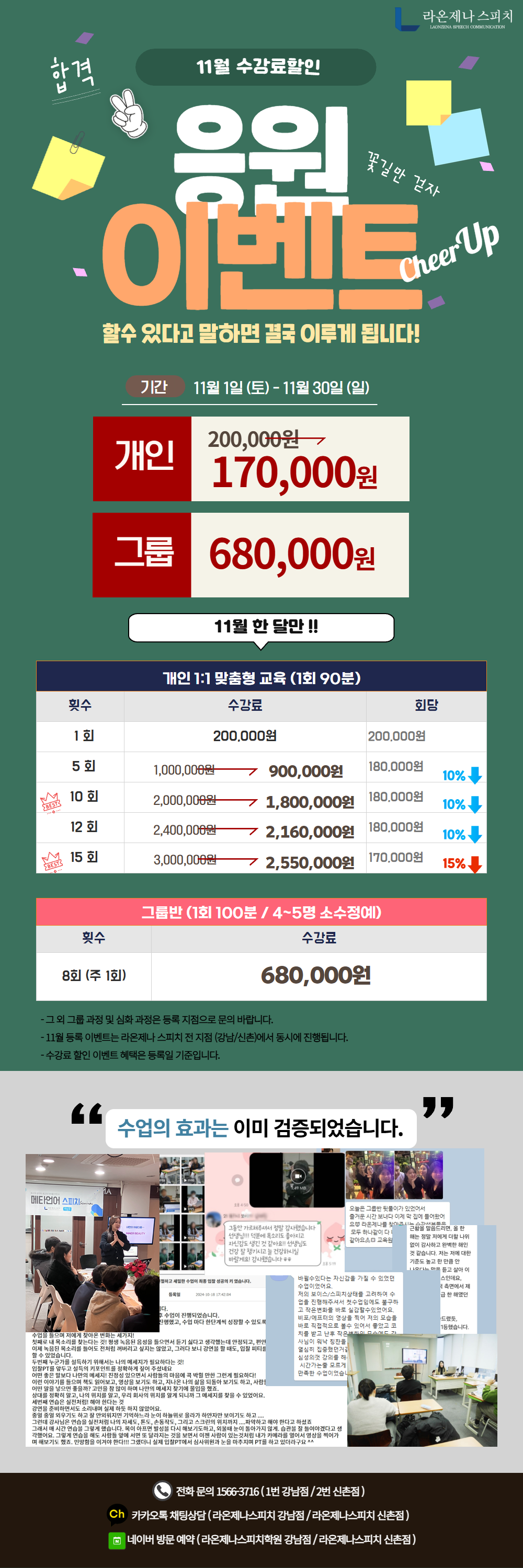 [11월 할인 이벤트] 응원 이벤트 수강료 최대 15% 할인!